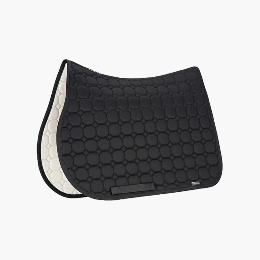 Ce tapis de selle est conçu avec un extérieur et un intérieur en coton mélangé 100% naturel, alliant douceur et durabilité. Les tissus antibactériens et anallergiques protègent la peau du cheval et réduisent les irritations, même pour les équidons sensibles.