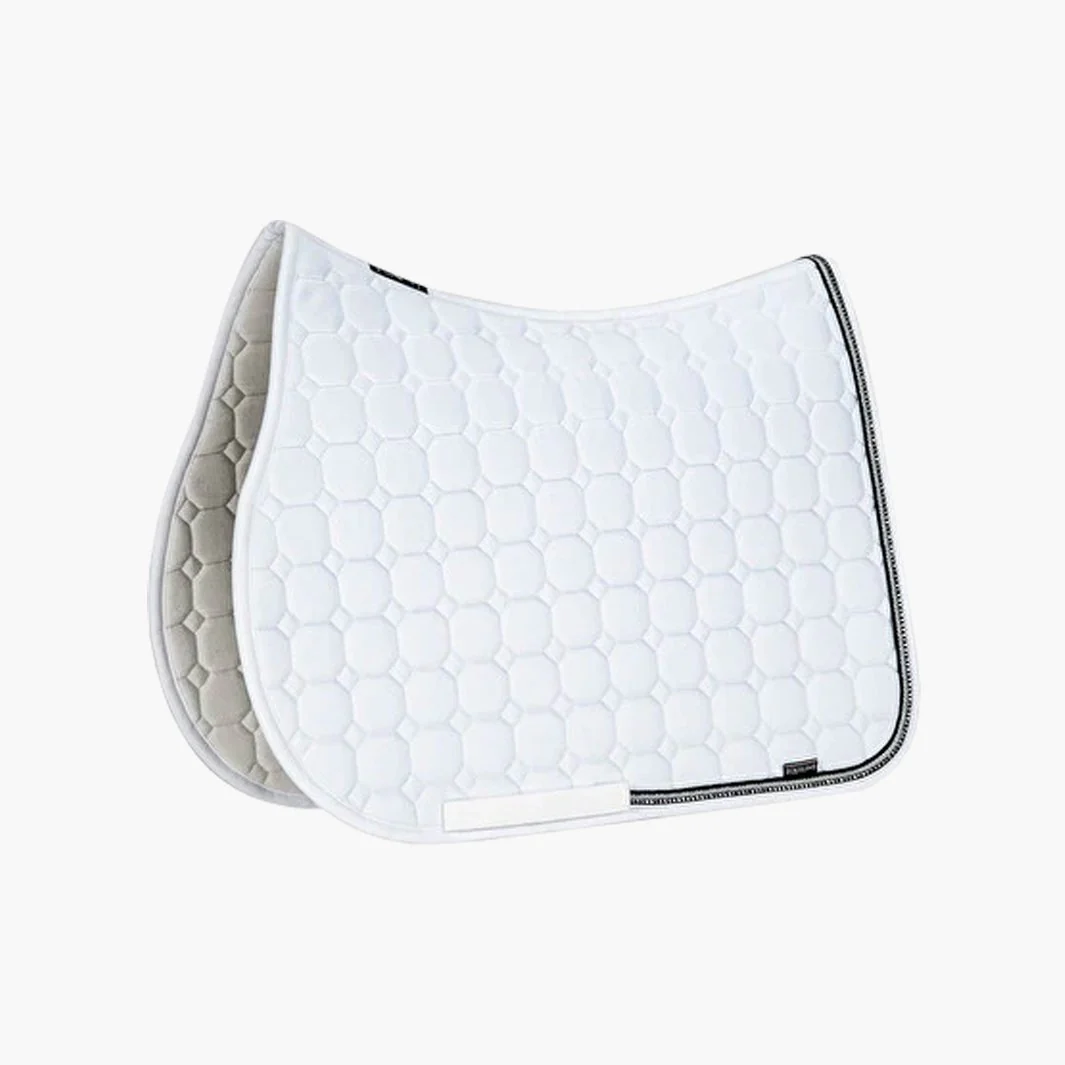 - Texture et toucher: tapis de selle en coton doux et anallergique, avec un bord en strass qui apporte une touche scintillante tout en restant agréable contre la peau.