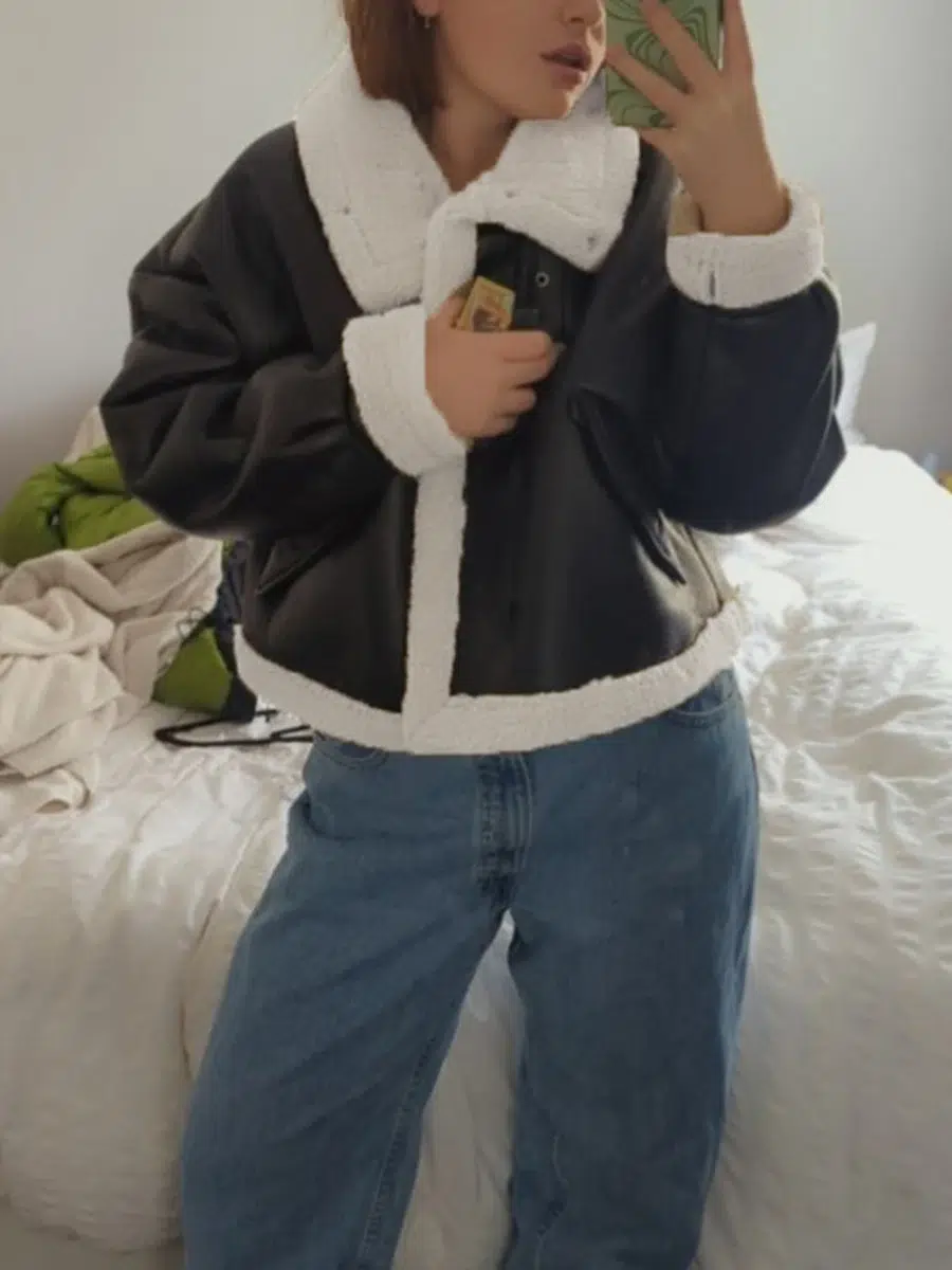 Adoptez la veste aviateur moumoute Aurélie et restez au chaud avec style