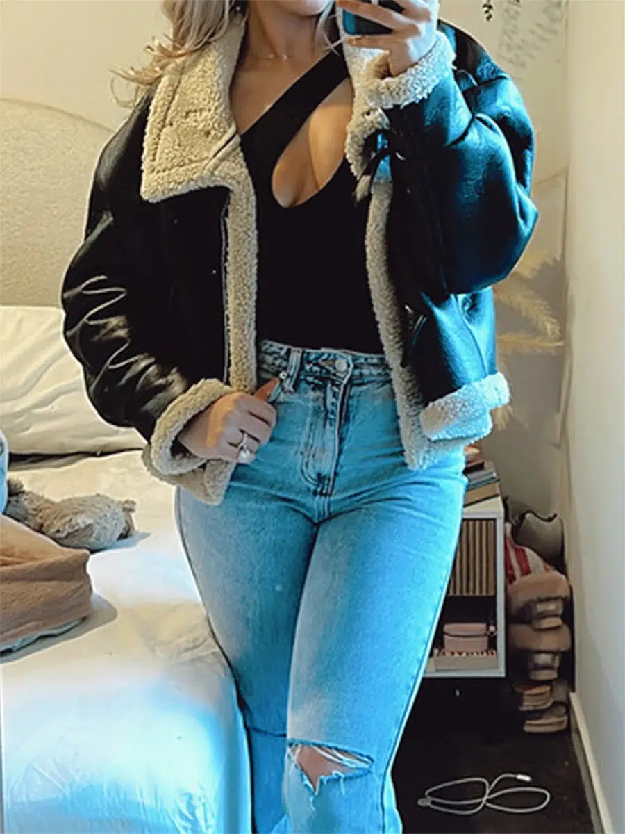 La veste aviateur moumoute élégante et chaude, baptisée « Aurélie », est l’alliée idéale pour celles qui cherchent à combiner style et chaleur cet hiver. Enveloppée de sa douce doublure en moumoute, cette veste est conçue pour vous apporter un confort optimal tout en vous offrant un look audacieux et intemporel. Pièce maîtresse de votre garde-robe, elle est parfaite pour tous vos rendez-vous hivernaux.